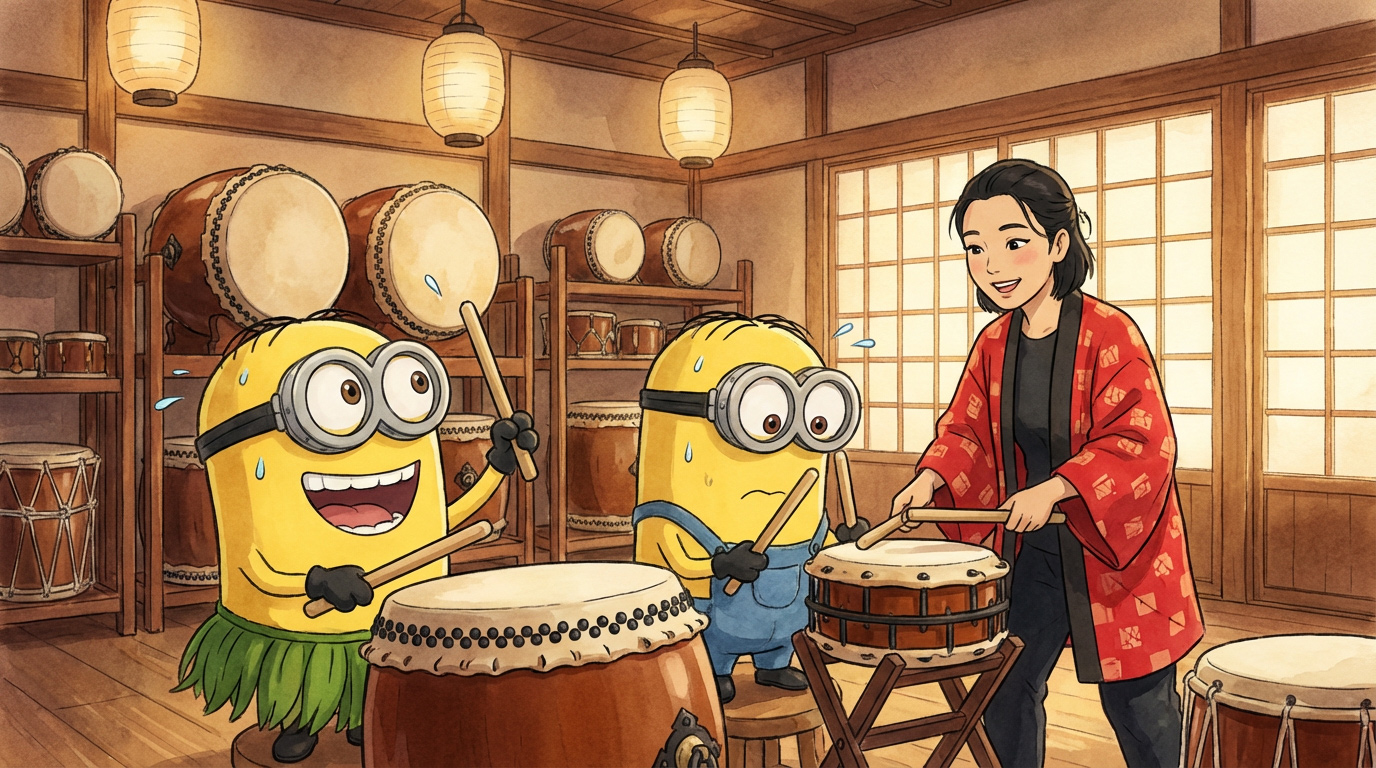 Vandaag doen we een cultuurdagje. We willen eens aan de lijve ondervinden wat Tokyo ons allemaal nog te bieden heeft. En hoe kunnen we dat beter voelen dan door een Taiko drum workshop te gaan volgen. Een beetje trommelen, dat moet lukken dacht Kevin. Al bleek al snel dat zijn ritmegevoel ver zoek was. Terwijl hij werkte aan zijn oog-hand-coördinatie ging Pedro helemaal los. Z'n zuiderse salsa achtergrond kwam nog eens goed van pas.