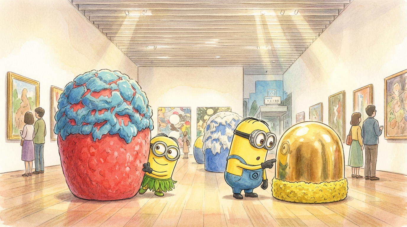 Genoeg armspieren gekneed, tijd om onze ogen de kost te geven. Blijkbaar steken ze hier museums helemaal vanboven in hoge torens. Hup naar boven, even wat snacken in de lift want het zijn heeel veel verdiepingen.