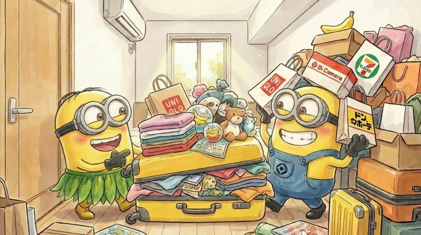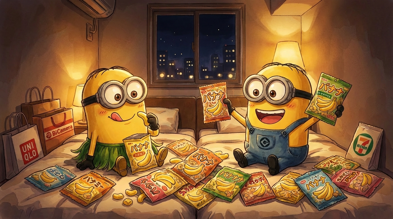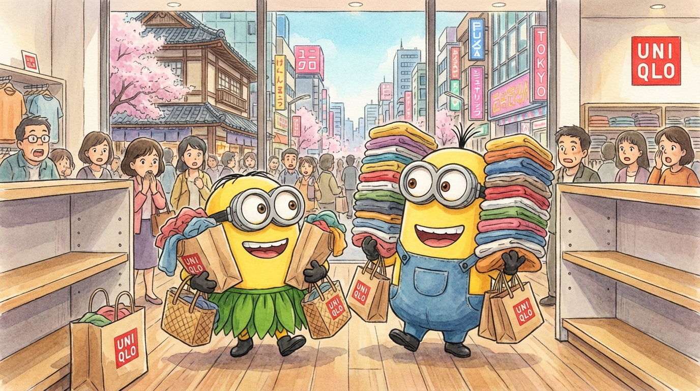 Voor de tweede keer deze reis gingen we de uniqlo binnen om nog een paar nieuwe tenues te kopen. Het is hier super goedkoop, dus we nemen alles mee waar ons oog op valt. Zelfs de visnetjes uit de paskamers stonden ons als gegoten. Hoppa, die nemen we ook mee.