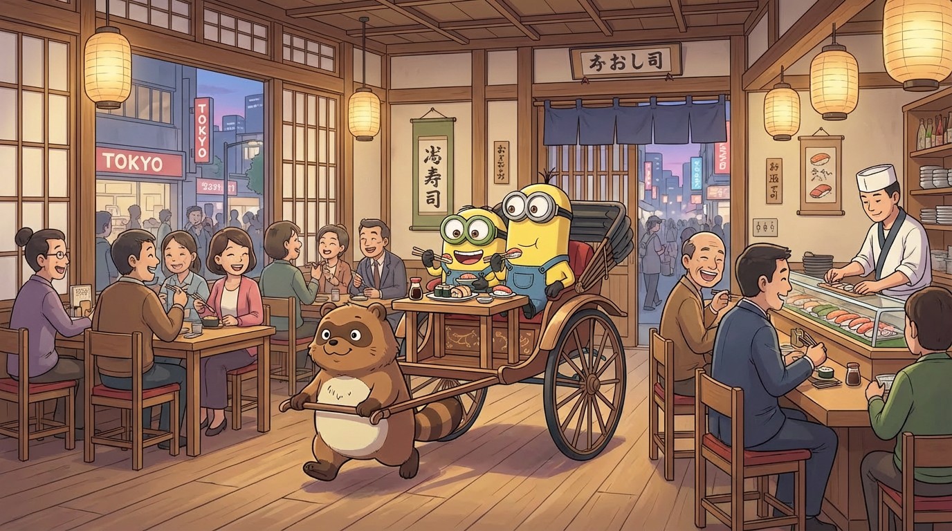 Door even rustig goed na te denken in een comfortabele setting kregen we het inzicht dat we de bananenboot moesten inruilen voor andere vervoersmiddels. In de lucht bijvoorbeeld, waar we een mooi uitzicht mee kregen over alle Apple stores van Tokyo. Van de helikopter gingen we over naar een Jinrikisha om zo te genieten van het Yoyogipark. De culinaire tocht erna was inbegrepen in de prijs, mooi meegenomen.