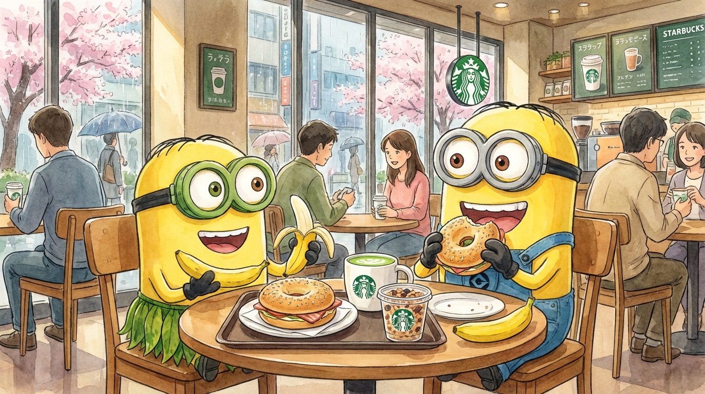 Vandaag starten we de dag met een ontbijtje in Starbucks. Waar beter dan in Tokyo om in een Amerikaanse keten binnen te stappen voor een traditioneel Japans ontbijt. Njammie.