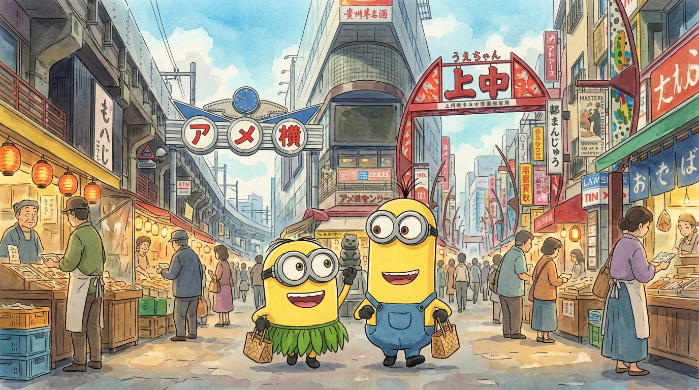 Op onze weg vonden we grappige winkeltjes met slotmachines om in Japan nutteloze Chinese brol te kunnen kopen. Kevin had nog wat centjes in z'n zakken zitten en we super diverse dingen gekocht.