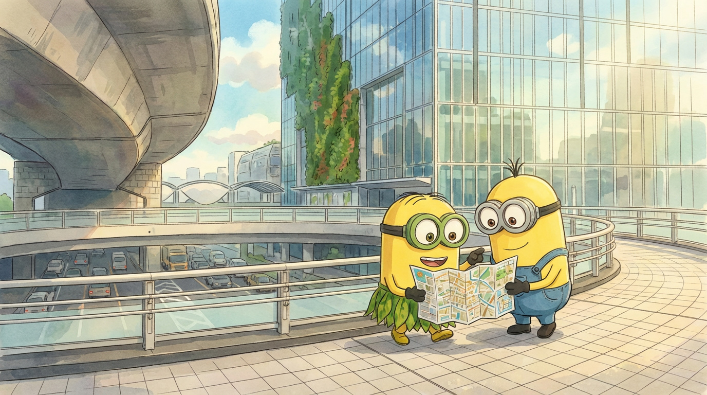 Veilig geland! Die bananenbrandstof heeft z'n werk goed gedaan, nu we eindelijk eens op reis zijn hebben we in sneltempo eerst een toertje rond de wereld gedaan om dan zachtjes te landen op de luchthaven van Tokyo. Missie volbracht.