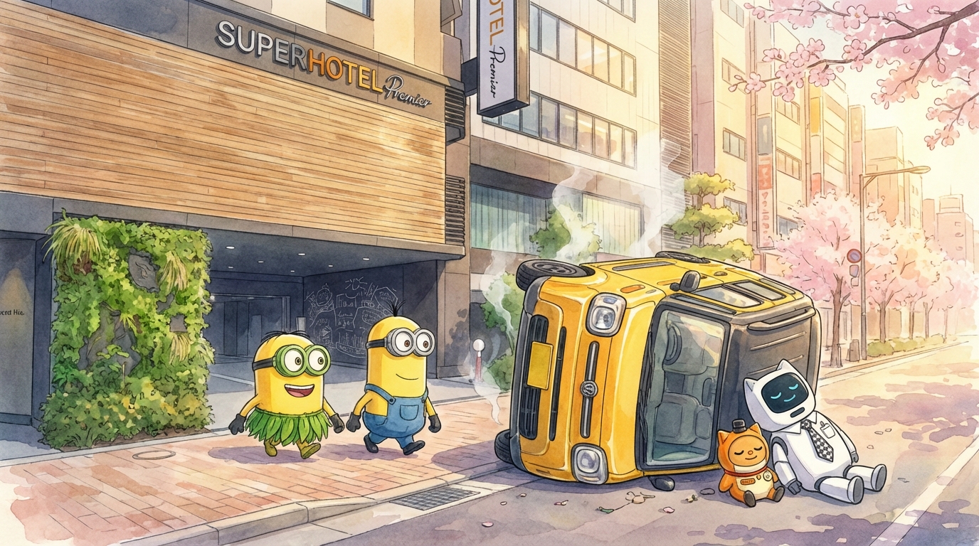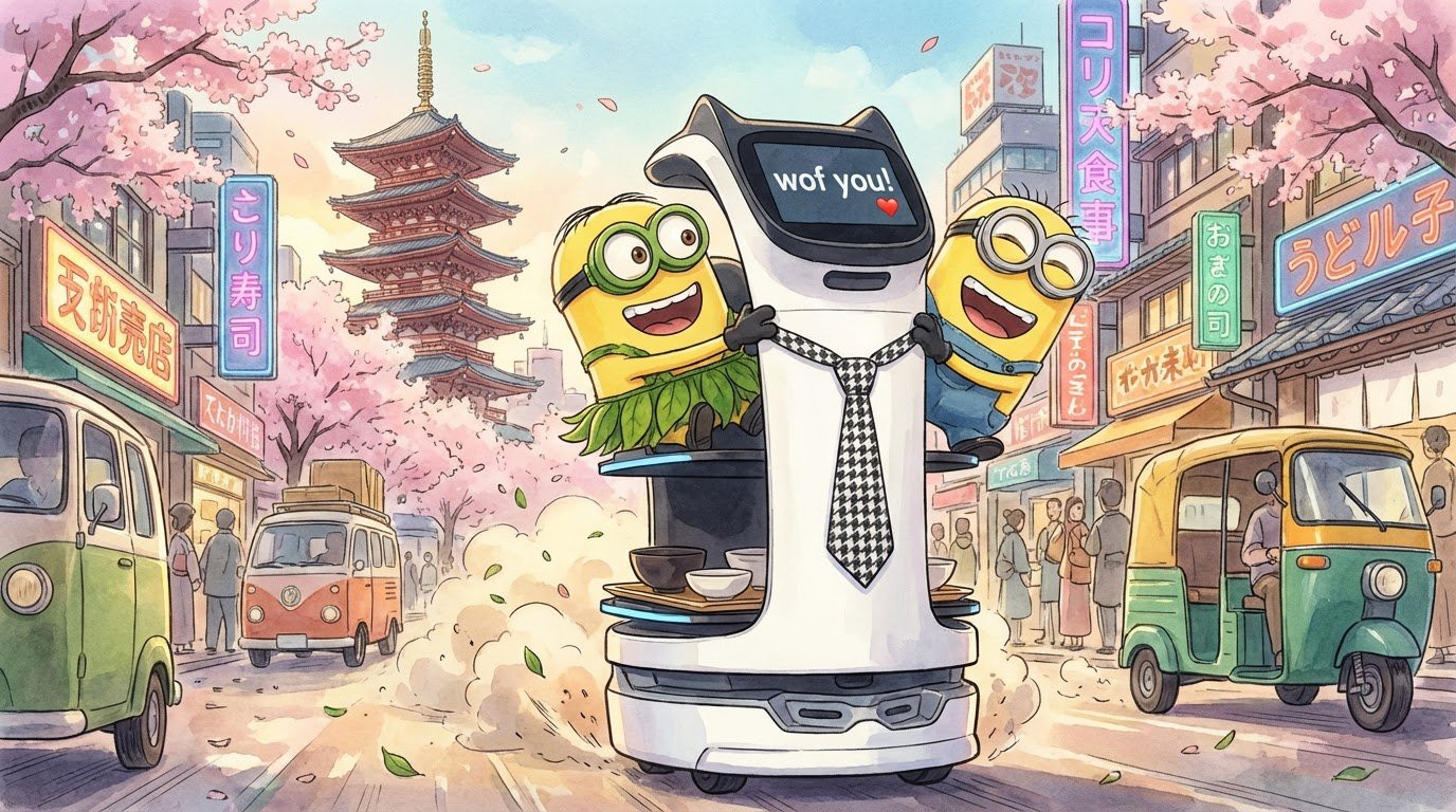 Zoals vrienden al eens doen voor elkaar gaf hij meteen z'n ontslag en mocht hij, of zij, het van z'n baas afbollen. Letterlijk. We mochten aan de levende lijve ondervinden hoe goed hij kon bollen over de straten van Tokio.