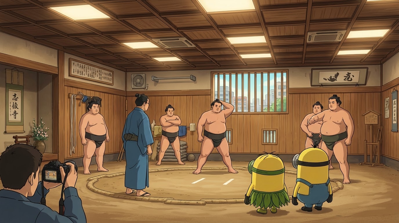 Dankzij connecties van onze nieuwe vriendjes zijn we binnen geraakt in een sumoworstel training. Wat een spektakel! En terwijl doorsnee toeristen hier muisstil moeten zijn gingen wij voluit om luidop mee te supporteren voor onze nieuwe vrienden. Het werkte aanstekelijk, zo konden ze nog eens hun lachspieren gebruiken. Alweer vrienden voor het leven gemaakt hier.
