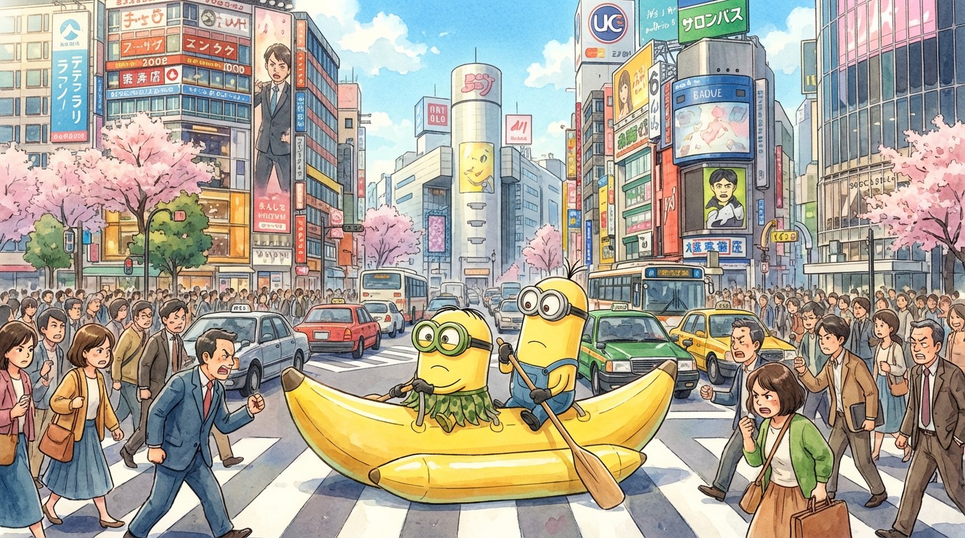 Hallo Tokio! Fris en monter trekken we de stad in. En daarmee bedoelen we dat we een groot donker gebouw vol vreemde ruimtes waar we kiekjes kunnen nemen voor onze instagrams. Kwamen we daar toe en moesten we blijkbaar tot aan onze knieën door het water waden dat vol goudvissen leek te zitten. Jakkes, onze schoentjes werden nat. Gelukkig had Kevin een geniale ingeving en plots zaten we op een bananenboot. Veel beter zo!