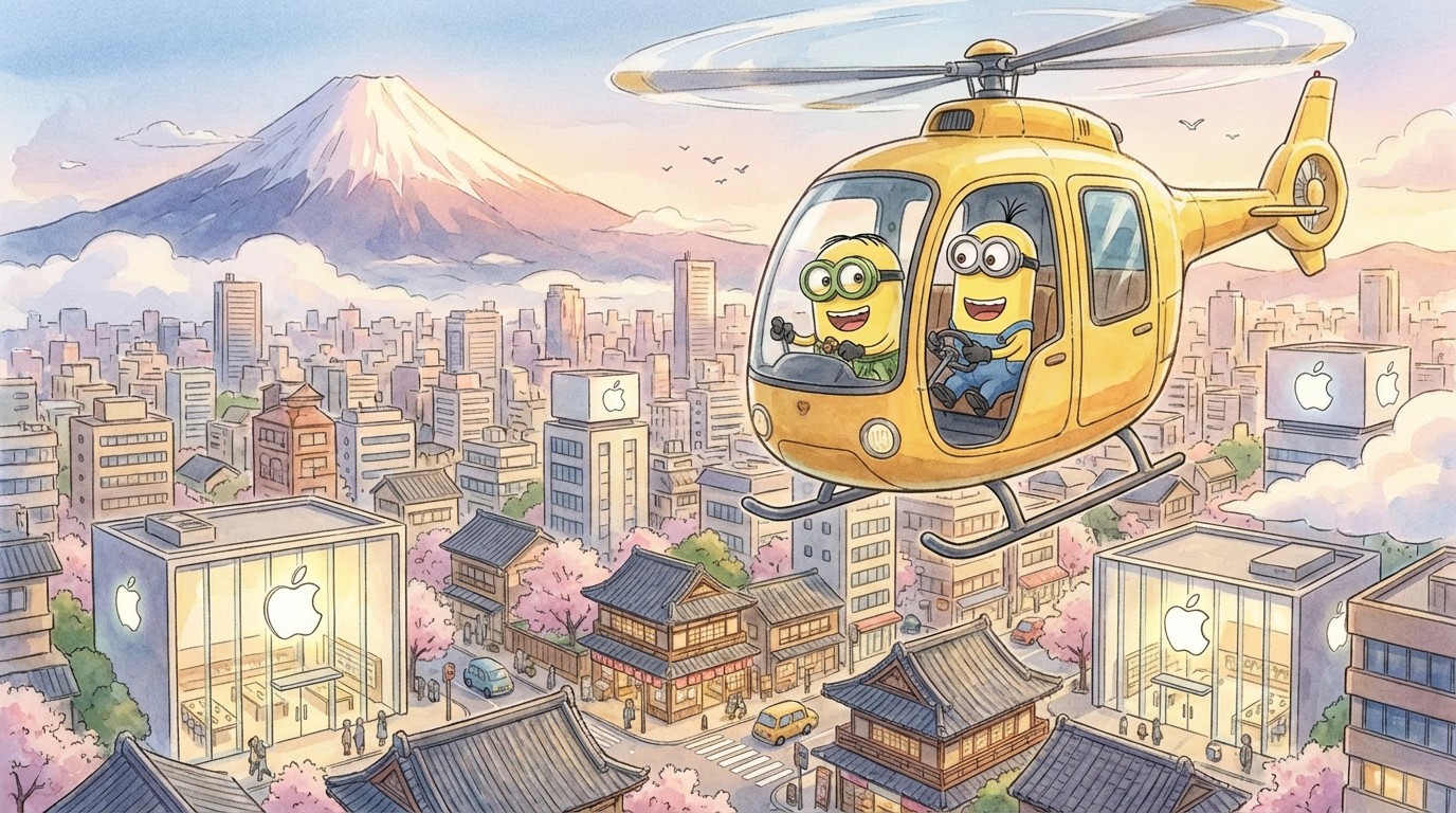 Door even rustig goed na te denken in een comfortabele setting kregen we het inzicht dat we de bananenboot moesten inruilen voor andere vervoersmiddels. In de lucht bijvoorbeeld, waar we een mooi uitzicht mee kregen over alle Apple stores van Tokyo. Van de helikopter gingen we over naar een Jinrikisha om zo te genieten van het Yoyogipark. De culinaire tocht erna was inbegrepen in de prijs, mooi meegenomen.