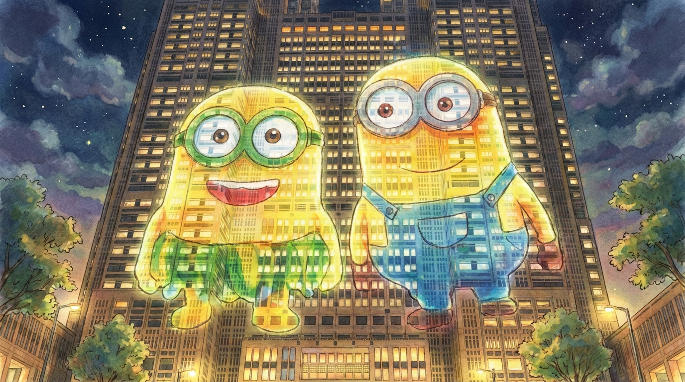 Als afsluiter werden we nog getrakteerd op een light mapping show op één of ander weer veel te groot gebouw hier in Tokyo. Met zijn technische hacking-skills slaagde Pedro erin om de show te hacken en onze vakantiekiekjes op het gebouw te projecteren. Kevin had zichzelf nog nooit zo groots gezien, z'n zelfbeeld is weer astronomisch gegroeid. Core memory momentje.