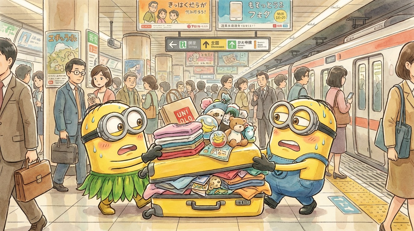 Voor de tweede keer deze reis gingen we de uniqlo binnen om nog een paar nieuwe tenues te kopen. Het is hier super goedkoop, dus we nemen alles mee waar ons oog op valt. Zelfs de visnetjes uit de paskamers stonden ons als gegoten. Hoppa, die nemen we ook mee.